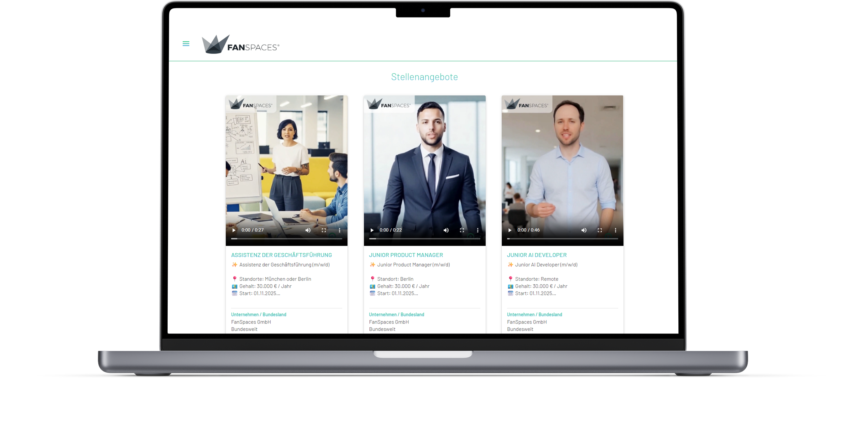 FanSpaces provides AI powered tools for video-recruiting and onboarding of talents. They also run the european video-recruiting platform Best-Places-to-Work.com